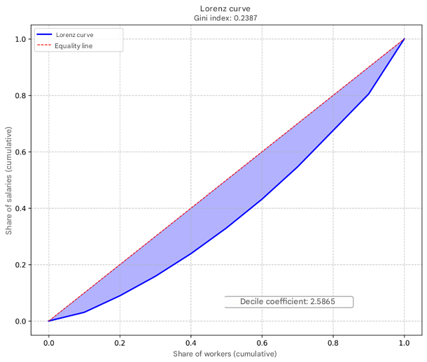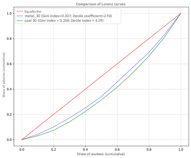 Source: [9, p. 138]. The calculation of industry decile coefficients and the Gini index yields the following results: Table 4. Decile coefficients and Gini indices according to Table 3